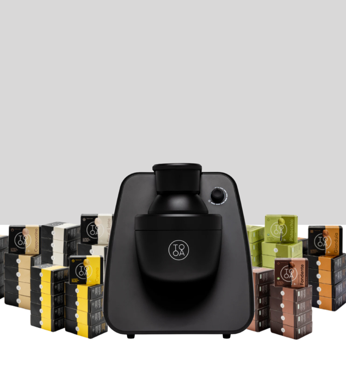che ti permette di preparare gelati in pochi minuti, senza lunghe attese! Personalizza le tue ricette con ingredienti freschi o i nostri preparati, per un'esperienza unica e su misura. Le macchine TooA, prodotte in Italia, combinano design e funzionalità, offrendoti non solo gelati, ma anche sorbetti e granite.